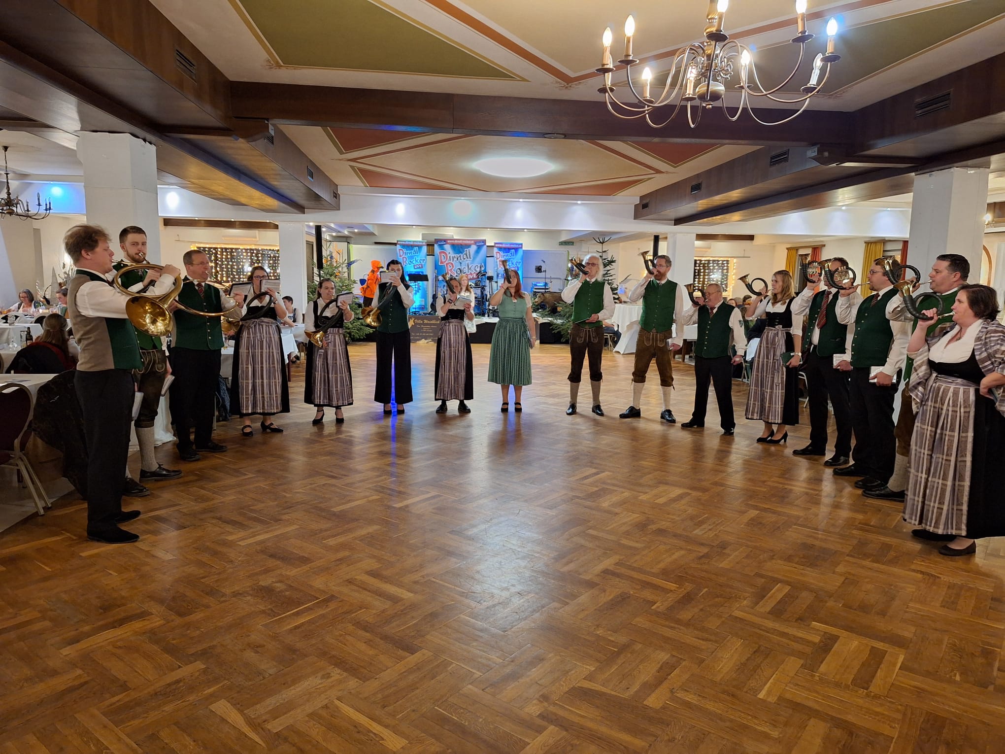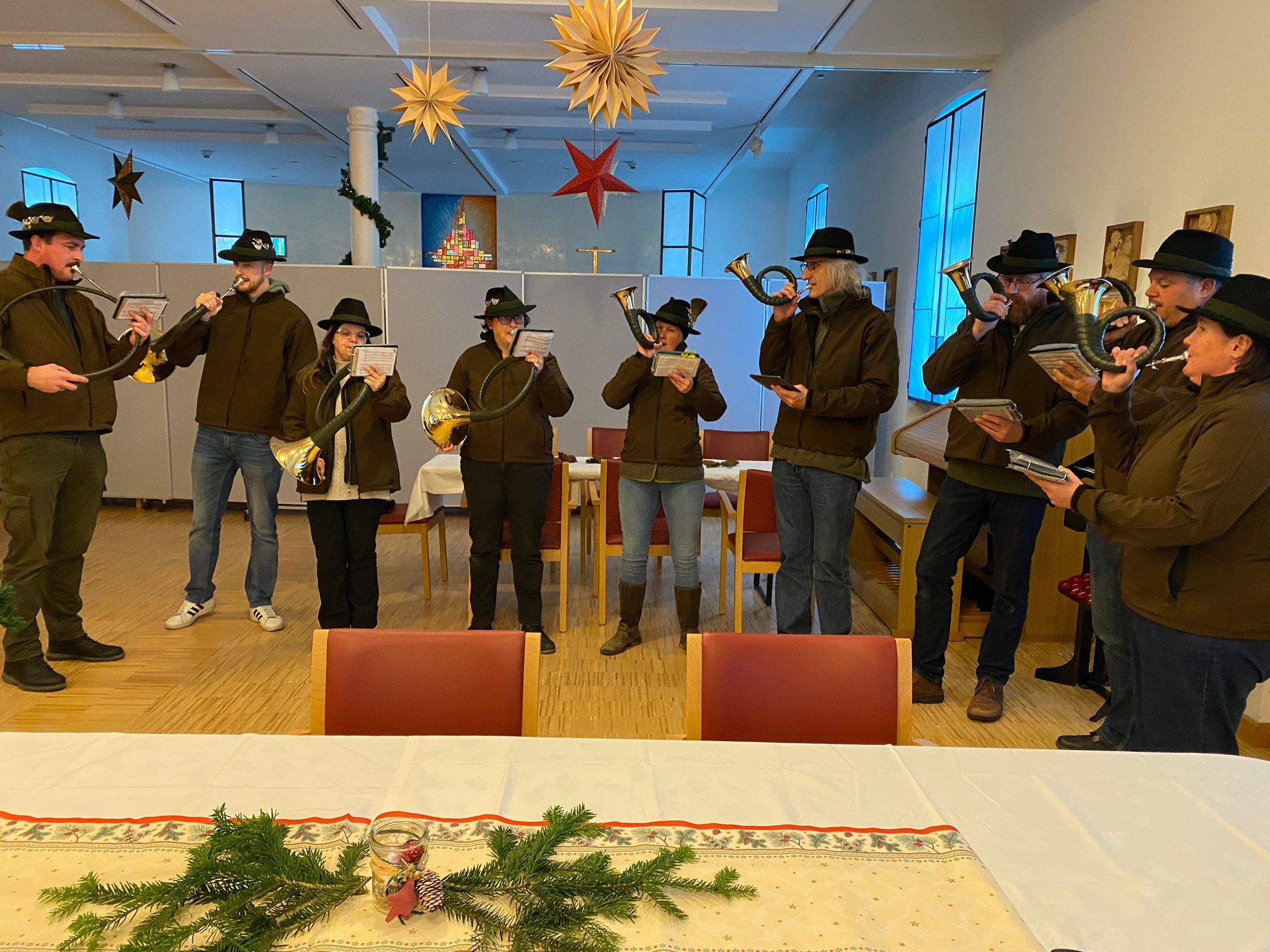 Am vergangenen Wochenende hatten wir die Freude, mit unseren Jagdhörnern im Pflegehaus St. Louise aufzutreten. In der weihnachtlichen Atmosphäre durften wir den Bewohnerinnen und Bewohnern mit traditionellen Klängen und musikalischen Geschichten ein Lächeln ins Gesicht zaubern.